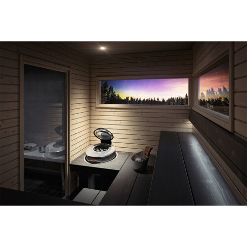 Der stets einsatzbereite, elektrische Saunaofen Forte ist die perfekte Wahl für alle, die häufig in die Sauna gehen und die Wärme sofort genießen möchten. Vergessen Sie die Hektik des Alltags und genießen Sie die gesundheitlichen Vorteile eines Saunagangs, wann immer Sie wollen. Alles, was Sie tun müssen, ist, die Abdeckung zu öffnen, Wasser auf die heißen Steine zu gießen, sich zurücklehnen und die Wärme auf Ihrer Haut zu spüren und das angenehme Saunaerlebnis zu genießen.