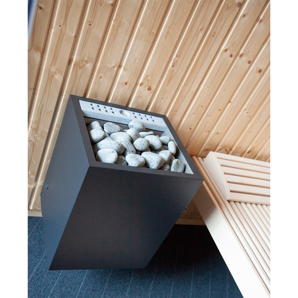 Mit dem Saunaofen Home combi setzt sentiotec seine hohen Ansprüche an Design und Funktion fort. Die gerade Linien und die dunkle Farbgebung zeichnen das Design des Home combi Saunaofens aus. Der Ofen enthält zusätzlich einen Verdampfer (2 kW), womit eine sanfte Bio-Kombi-Sauna möglich ist.