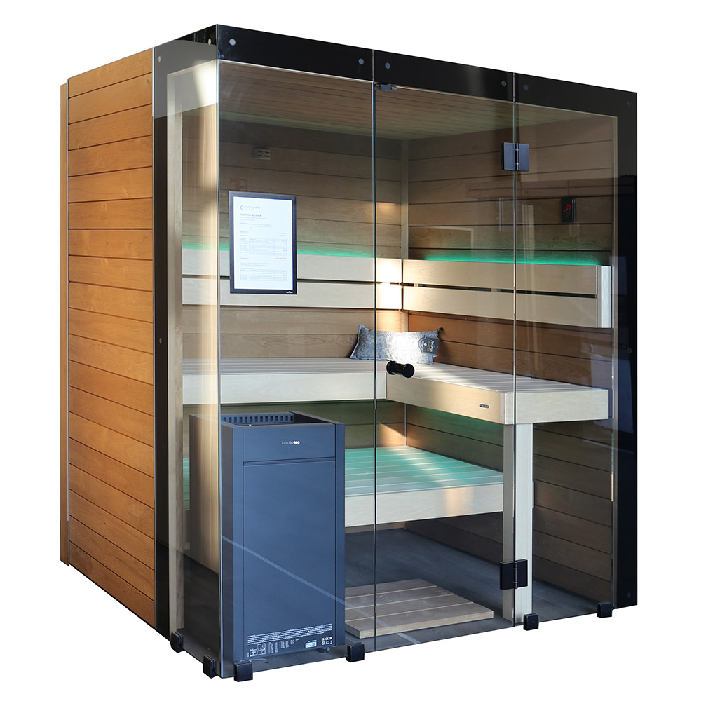 Maßgeschneiderte, energieeffiziente SaunakabineBlock Ausstellungsstück inklusive Zubehör